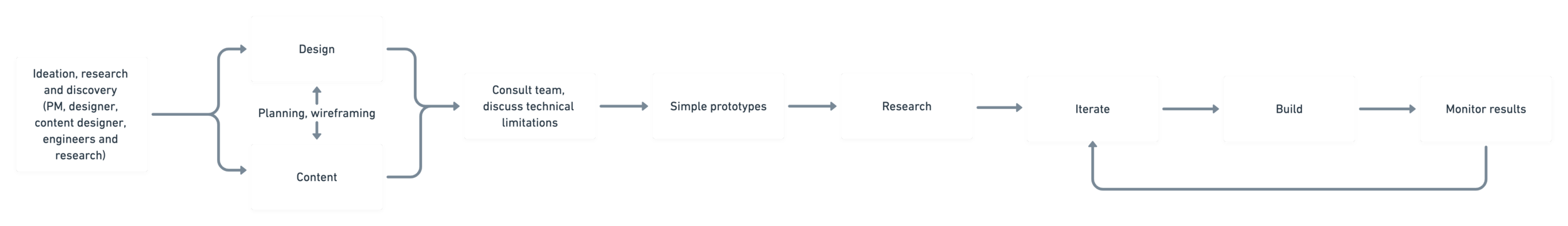 So I was tasked with building out all content design processes and establishing new ways of working within product teams.
